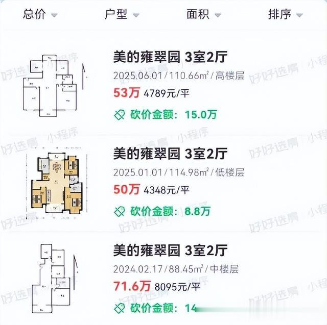 要知道,2016年9月,美的以楼面地价4516元/㎡拿下,2019年4月首开,销许均价在14910元/㎡。如今部分二手成交价已经低于地价了。