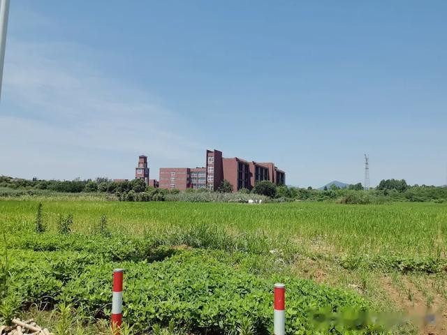 从正门看出去,有一所学校很孤独地在远处的田野深处,据介绍,这是学区横溪中学。